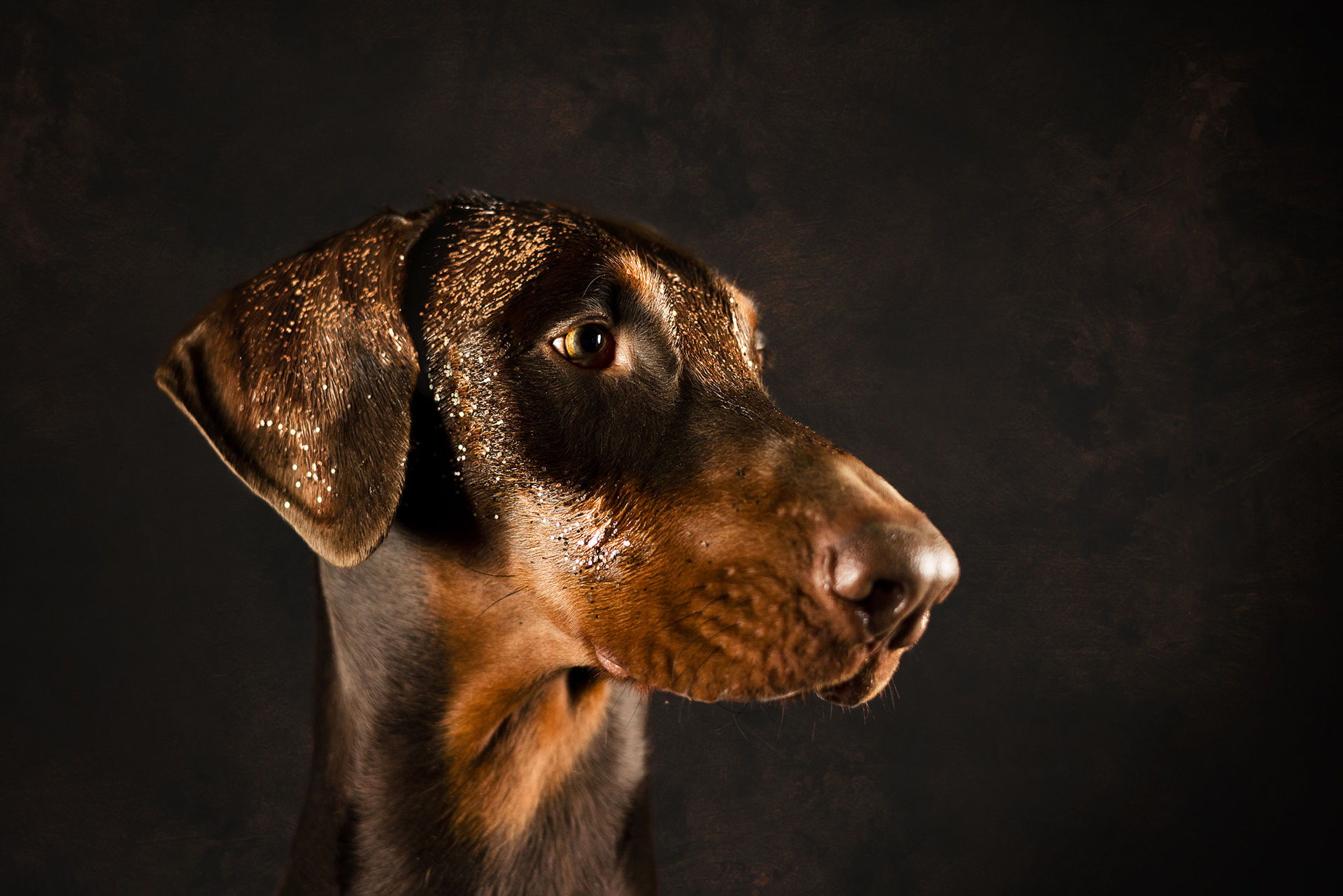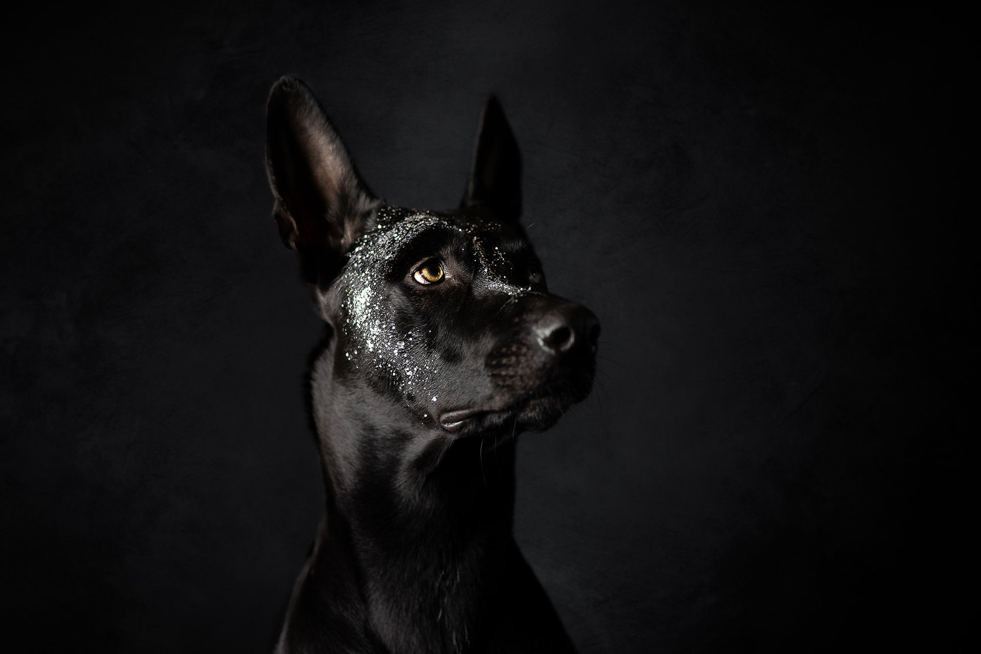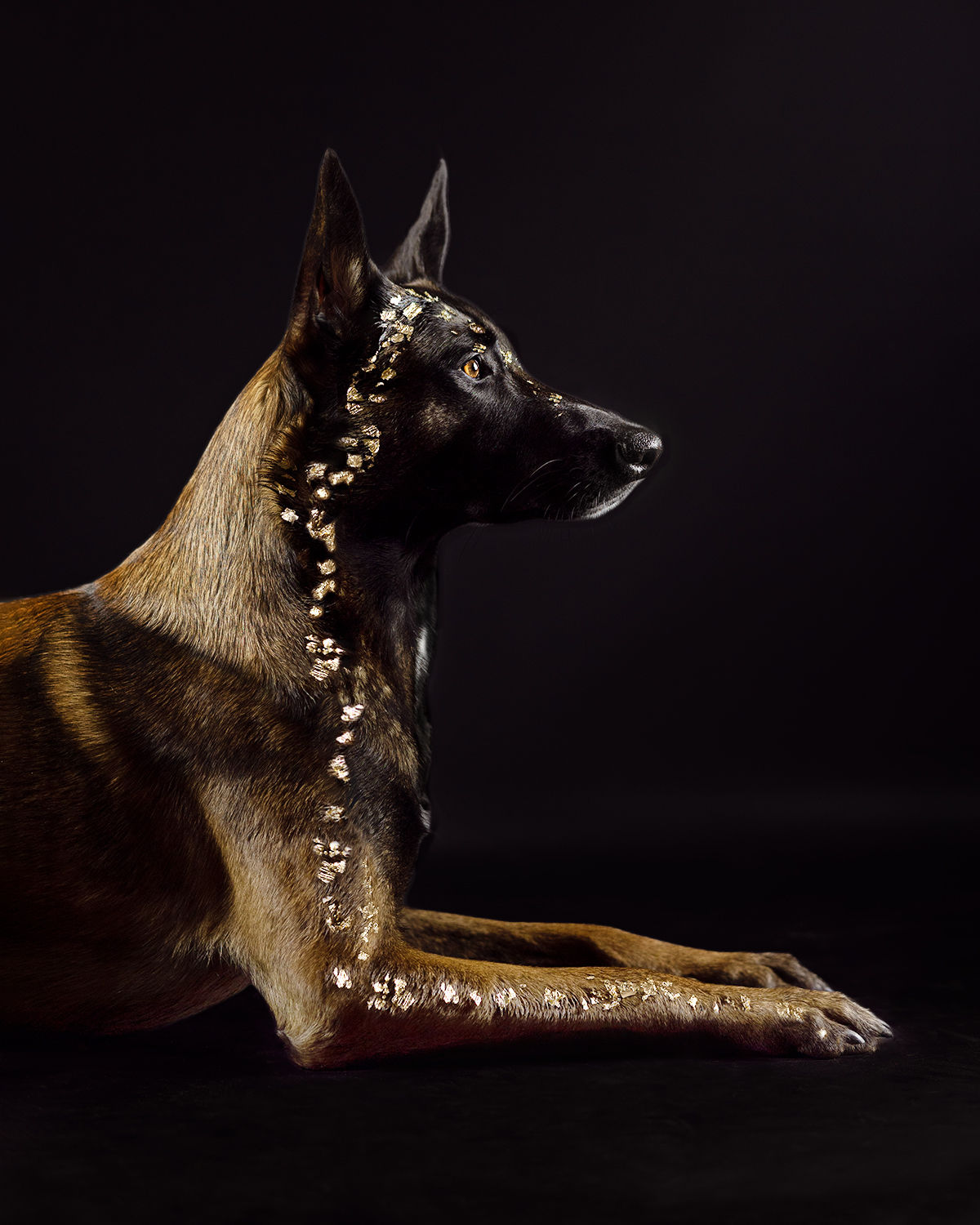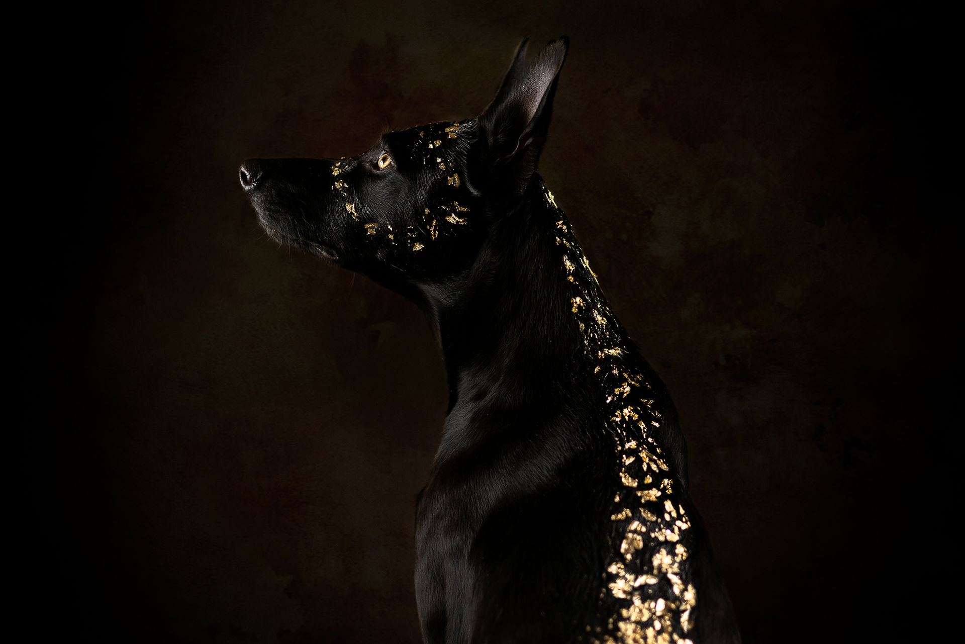 Egal ob wir den Hund mit Glitzersteinen, Blattgold in jeder Variante oder sogar Goldfarbe stylen, alles ist völlig ungefährlich für den Hund. Das Glitzermaterial wird mit Haargel am Hund befestigt und ist nach dem Shooting einfach mit einer Bürste wieder zu entfernen. Die Goldfarbe auf Basis von Babyöl mit einer einfachen Wäsche wieder aus dem Fell zu waschen.